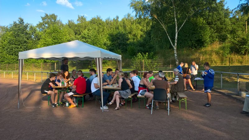 Am Freitag fand bei herrlichen Wetter unser erstes Sommerfest auf unserem Platz an der Westerholtstraße statt. Es ging am Nachmittag zunächst mit einem Faustballturnier auf Kleinfeldern los, bei dem Mannschaften bestehend aus aktiven Faustballern und den, die einmal schnuppern wollten, gemixt wurden. Für eine gute Kulisse sorgten die Nichtaktiven, die sich am Spielfeldrand niedergelassen hatten. Danach wurde für alle der Grill angeschmissen. Bei Wurst und selbstgemachten Salaten saß man noch lange in lockerer Atmosphäre zusammen.